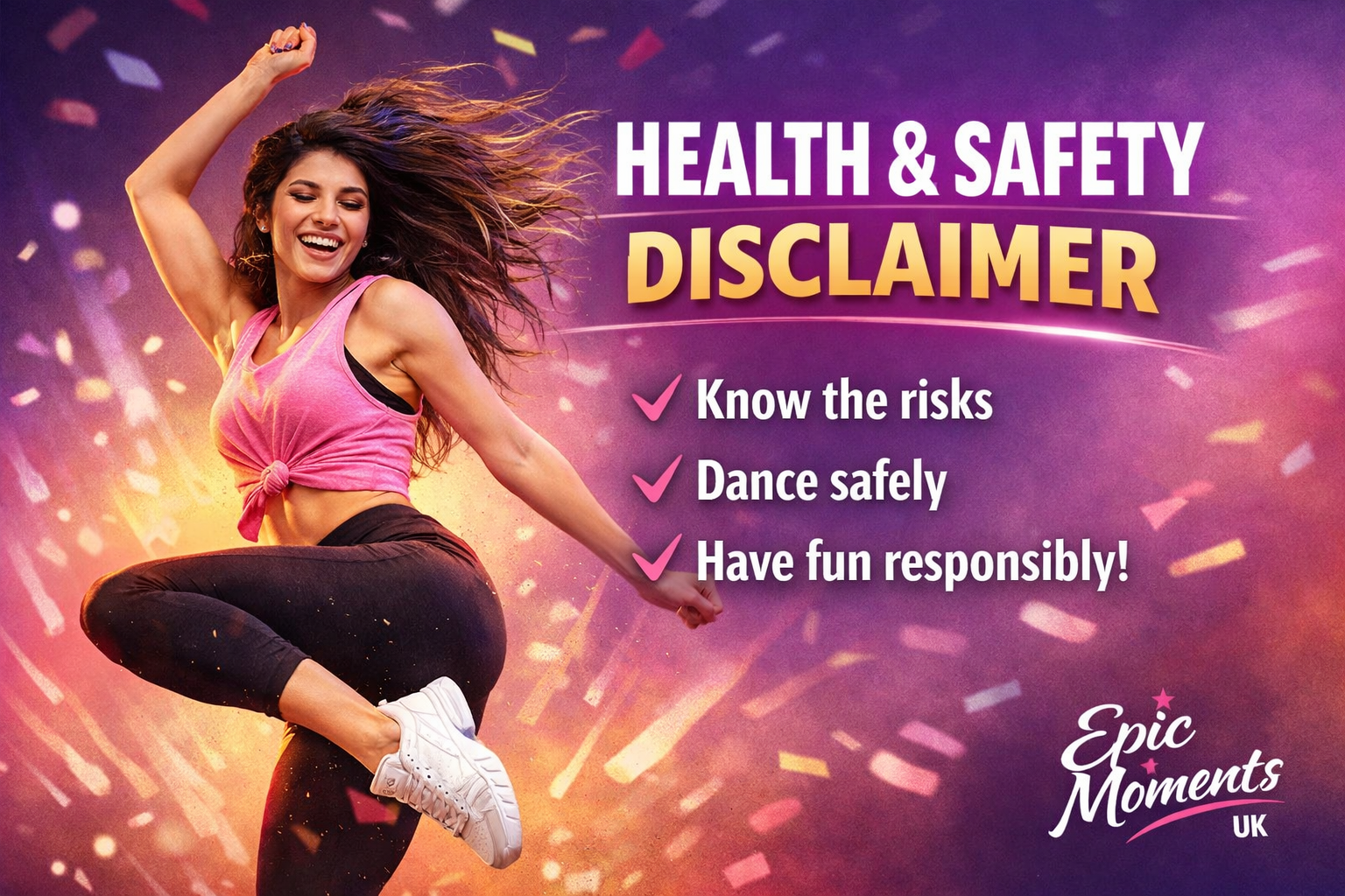 - As the event is taking place at a private or external venue, it is the responsibility of the organiser to ensure the space is safe, clean, and suitable for the activity. Epic Moments accepts no responsibility for venue conditions, obstacles, or hazards present on-site.
