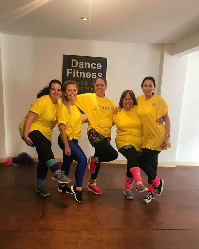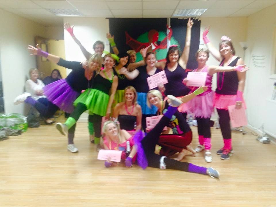 - 90 minute party learning a choreographed dance routine to a mix track of popular 80's songs