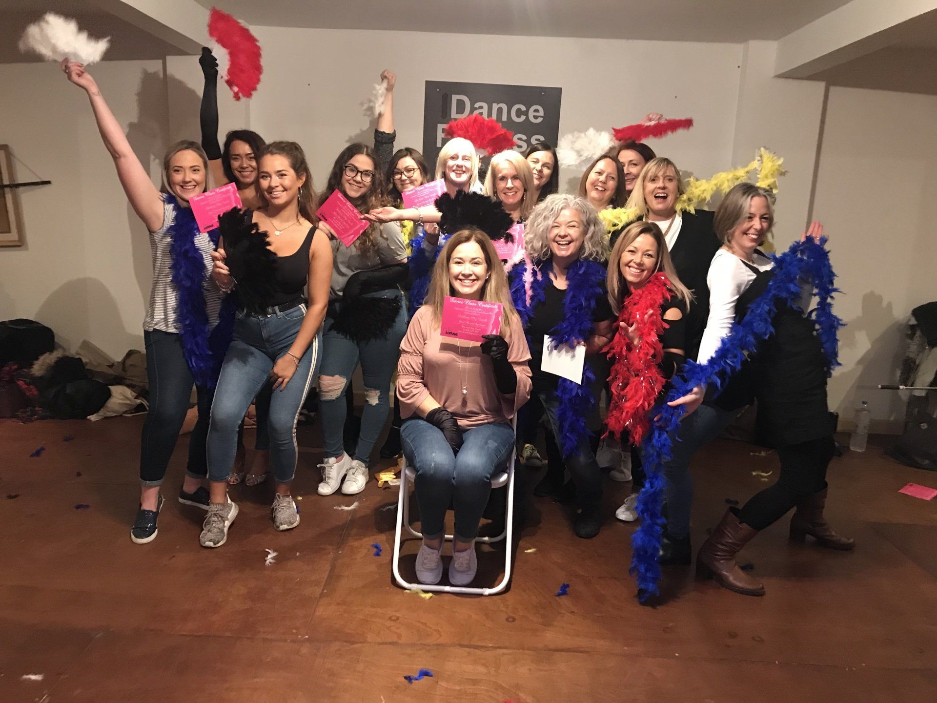 - 90 minute party learning a choreographed dance routine to a popular Burlesque soundtrack or mixture of songs