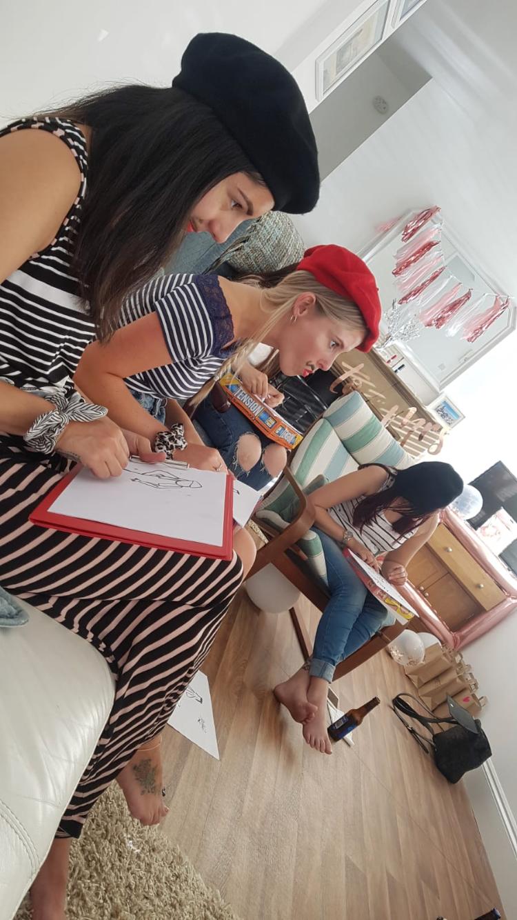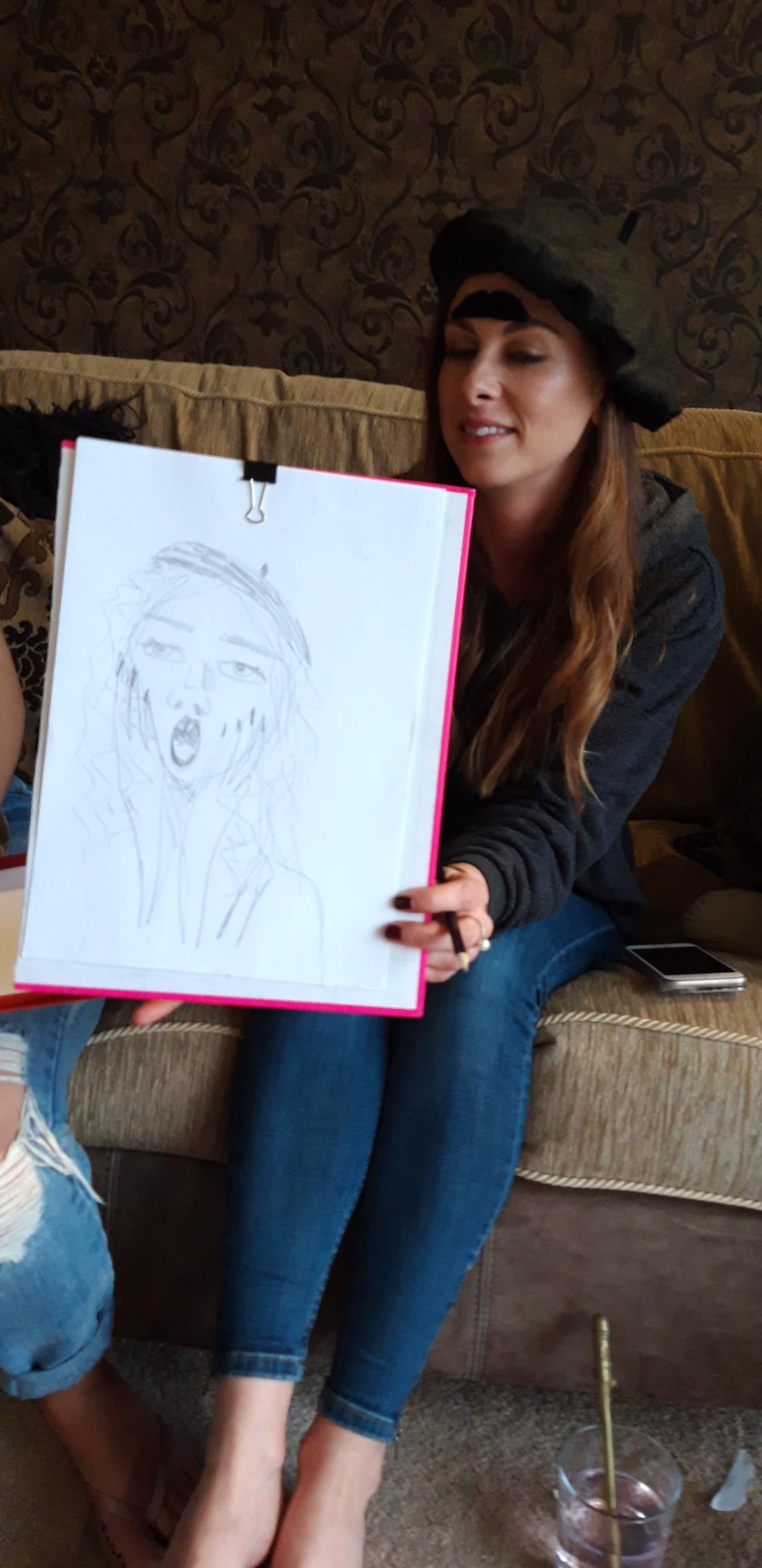 A £50 deposit secures your booking with the remaining balance due 14 days before your party. This ensures the model has all necessary drawing materials prepared for your event