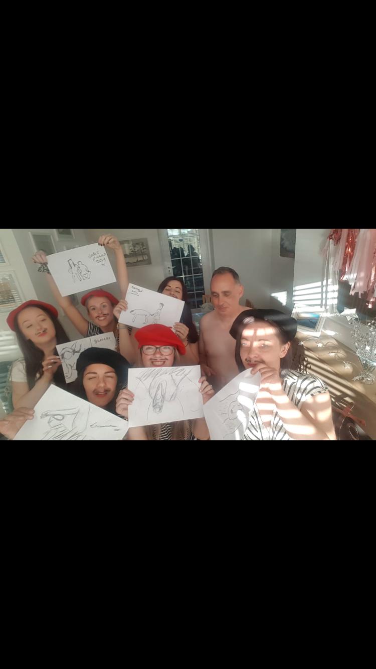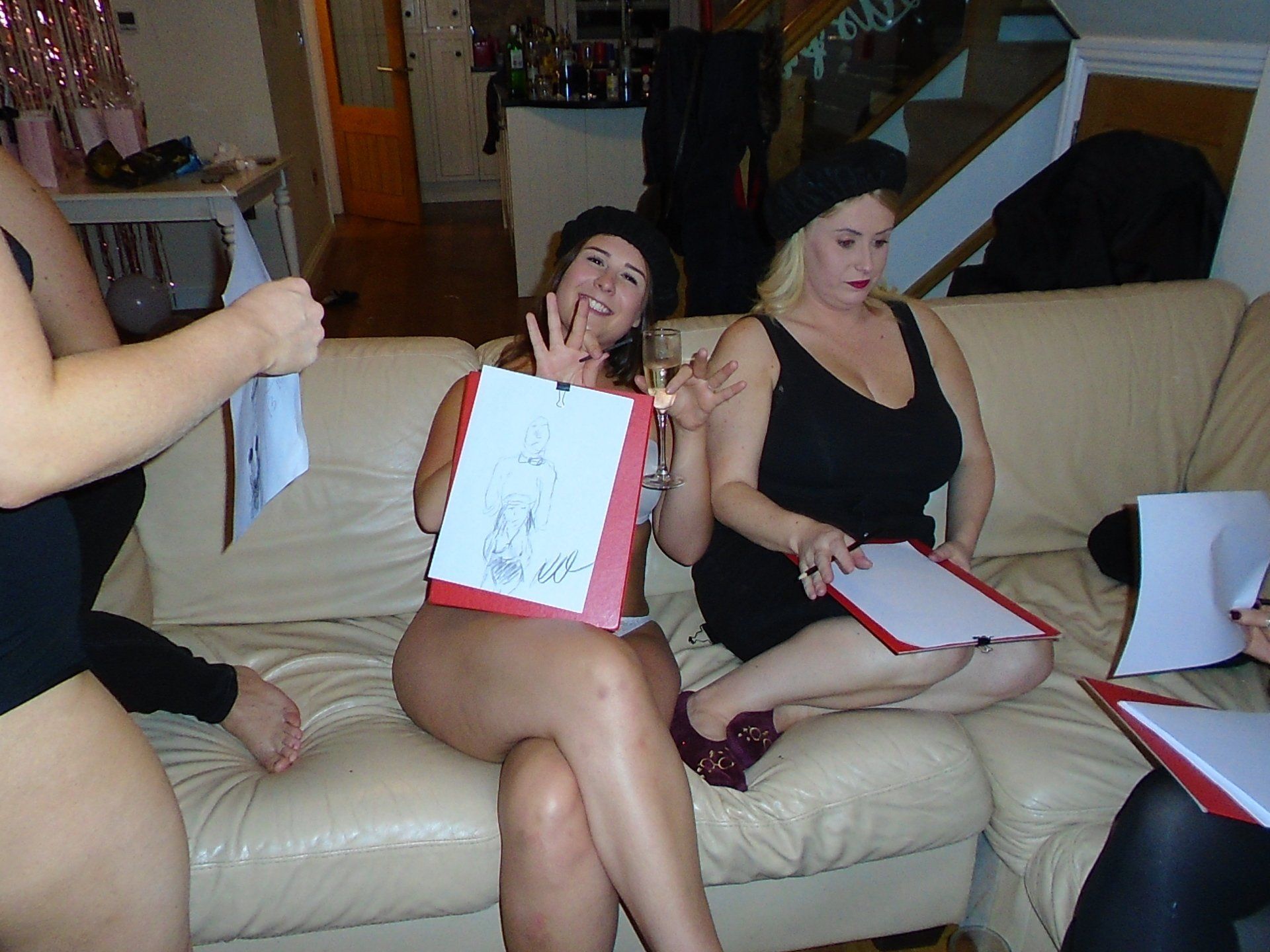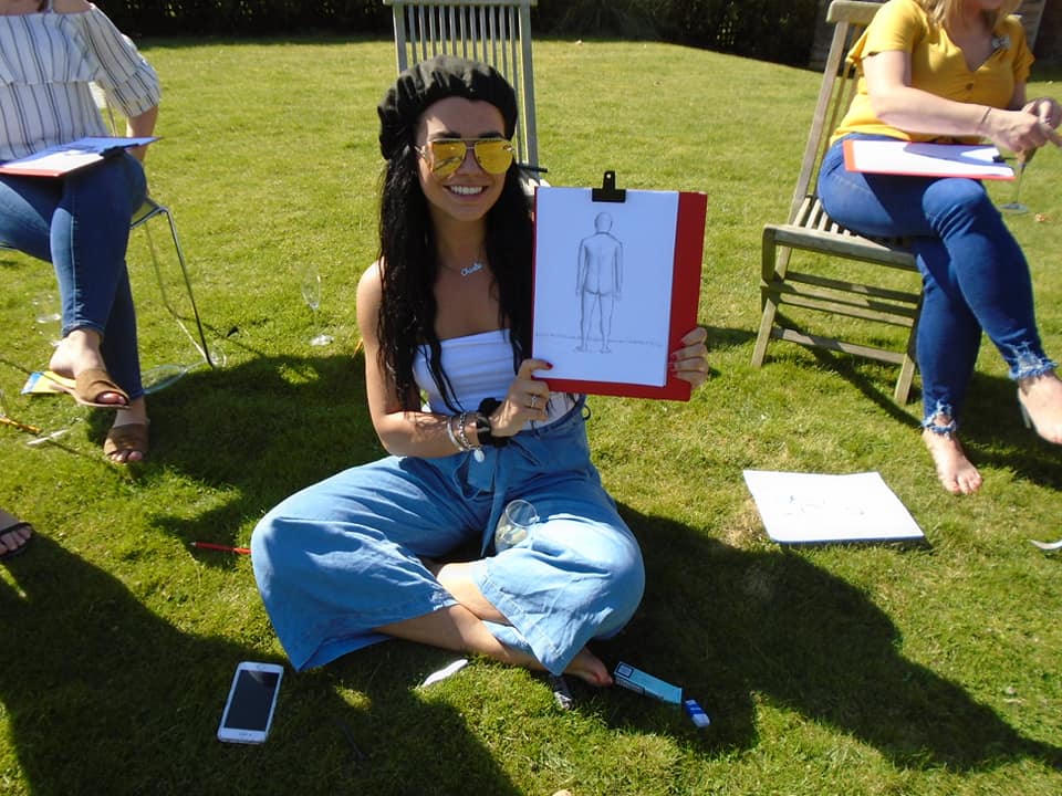 Hen Party Life Drawing offers a unique bonding experience filled with fun games, drawing exercises, and art techniques. Our entertaining model can pose fully nude, in underwear, or a g-string, and is open to special pose requests like yoga stances. All models are experienced and can tailor the session to fit your group’s needs. We bring the party to you, but if you need a venue, just ask—we can recommend one for a small fee